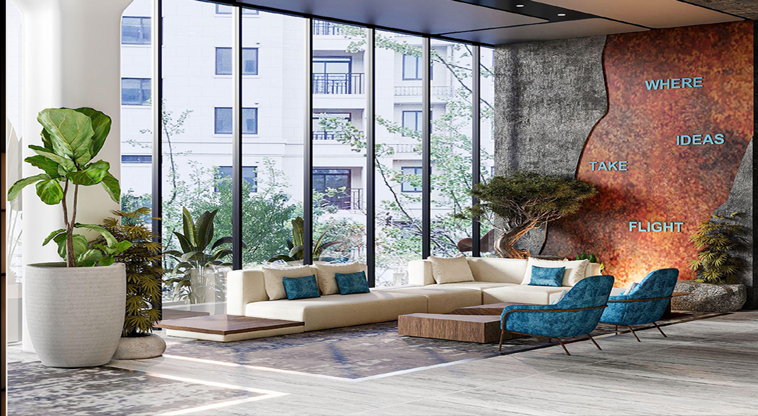 “Where Ideas Take Flight – a space that inspires creativity, comfort, and collaboration.” Step into a space designed to inspire creativity and collaboration. With modern interiors, natural light flooding through floor-to-ceiling windows, and lush greenery, this lounge offers the perfect balance of comfort and innovation. Whether you’re brainstorming big ideas or simply relaxing, every detail of this space is crafted to help imagination soar.
